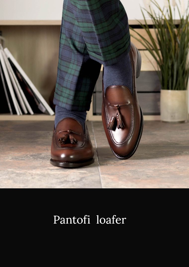 Loaferul este un pantof clasic care va oferi confort și stil. Mocasinii sunt pantofi fără șireturi care sunt ușor de îmbrăcat și potriviți atât pentru weekend, cât și pentru birou. Se poat executa din piele vițel box, piele intoarsa ,textile etc sau combinatii intre ele.